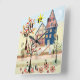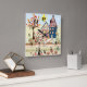 Applique, houses, village square wall clock