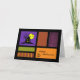 This Halloween card looks like a hand-appliqued patchwork of orange, purple and black fabrics with a haunted house and pumpkin.