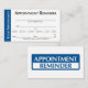 COLOR COORDINATED Appointment Reminder printed large on the reverse side.