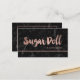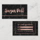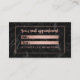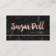 A modern, stylish appointment business card with modern hand lettering style brush typography in faux rose gold foil on a trendy and elegant black marble background.