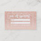 A modern, stylish appointment business card with modern hand lettering style brush typography in faux rose gold ombre faux glitter custom logo