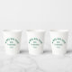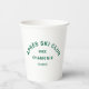 Après Ski Club, winter green ski resort crest paper cups. Personalise with the year of your ski trip, ski resort name and location. Perfect for a group destination ski trip or for an après ski theme party. Designed to match our Après Ski Club Collection.