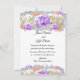 A beautiful combination of colours. This design features a bountiful display of delicate dusty plum peonies, apricot daisies and ivory florals too. A floral invitation ready for you to personalise for your special day.