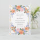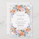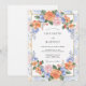 This design features a lush arrangement of watercolor apricot and blush pink roses. Delicate periwinkle and lavender floral accents create a romantic and airy atmosphere. The artistic botanical elements offer a soft, painted aesthetic perfect for a seasonal event.