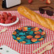 Hand-painted apricot branches with fruit and wasps, watercolor pattern