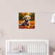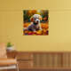 Cute Apricot poodle puppy dog playing in yellow fall leaves art.