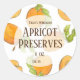 An apricot preserves jar label sticker featuring apricots illustrated with ink and watercolor that you can customise with your product details and personal message along with the date the product was made.