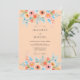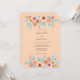 This design features a soft apricot backdrop adorned with delicate watercolor florals in shades of peach and blush pink. Ethereal sky blue foliage accents the romantic clusters of ranunculus and roses, creating a whimsical and airy aesthetic. The artistic rendering of the botanical elements provides a dreamy, hand-painted feel perfect for a romantic spring or summer theme.