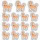 Destei's original cartoon illustration of a cute apricot coat colour Toy Poodle breed dog. The dog design is placed 15 times on the sheet. The top three ones are slightly bigger than the rest of the 12 other ones.