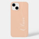 Apricot White Elegant Calligraphy Script Custom Personalised Name iPhone 14 Smart Phone Cases features a modern and trendy simple and stylish design with your personalised name in elegant hand written calligraphy script typography on a apricot background. Designed by ©Evco Studio www.zazzle.com/store/evcostudio