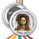 April 30th is Hairstyle Appreciation Day button for a beauty salon, hair stylist. African-American woman in dreads.