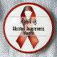 The words “April is Alcohol Awareness Month” are displayed in a clean, block-style font, making the message clear and impactful. A vibrant red border frames the button, giving it a polished and eye-catching look.