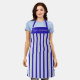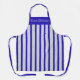 This apron is shown as is in a bold blue and silver-colour stripe print. Text of Merry Christmas in silver-colour at top.