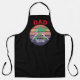 Sunset Design #FATHERSDAYGift Black Chef Dad Apron. Customisable Chef Name Personalised Apron for Dad or Step Dad . Unisex Apron Design. Cool Sunset Design Patterm with bbq flame, fory & spatula with decorative letter print "the myth, the legend, the chef meister " print honouring the chef.