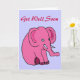 Funny cartoon pink elephant get well card says: If you can see me, you've had a little too much medicine.