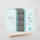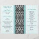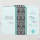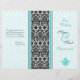 The text on this aqua and black damask wedding program is fully customisable. It is intended to be folded down the middle. To change the text, use the personalise option. For more extensive changes, such as changes to the font, font colour, font size, or text layout, use the customise it option. Once your text is finalised, if you need to move it around a bit, you can do that using the customise it option. This damask special occasion program is currently customised as a wedding program, but it would work well as a program for other special occasions as well. Really, this would even make a really nice church bulletin with changes to the text. Let your imagination lead you.