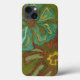 Aqua and Burnt Orange Flowers on Green Background Case-Mate iPhone Case