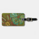 Aqua and Burnt Orange Flowers on Green Background Luggage Tag