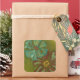 Aqua and Burnt Orange Flowers on Green Background Square Sticker