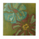 Aqua and Burnt Orange Flowers on Green Background Tile