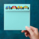 Aqua and Chequerboard Race Car Invitation Envelope