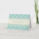Just married announcement card with elegant light blue turquoise and cream off white classic vintage style pattern, unique and stylish, customisable with your names and wedding date, the perfect way to share your happy news with family and friends.