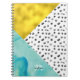 Personalised notebooks featuring a fun black and white watercolor dots with teal and gold accents.