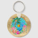 Aqua and Gold Ocean Palm Tree Summer Landscape Key Ring