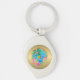 Aqua and Gold Ocean Palm Tree Summer Landscape Key Ring