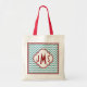 A classy look with aqua chevrons and red accents. The bold and attractive monogram in the centre makes a great way to personalise a tote bag or as a gift option for anyone from wedding guests to business clients.