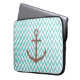 Aqua and White Chevron Glitter Anchor Laptop Sleeve