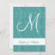 This Aqua and White damask and monogram design makes an elegant wedding invitation. Add your names and monogram to the front, and personalise with your text on the back. Try out different papers to see which look you like the best, by clicking on "Invitation Options" and then "Paper Type". Enjoy creating your own special look!