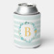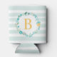 Aqua and Yellow Floral Wreath Monogram Can Cooler