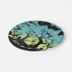Aqua and yellow haunted graveyard Halloween Paper Plate