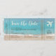 Aqua Beach Boarding Pass Ticket Save the Date Card