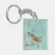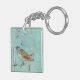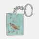 Aqua Bird by Kellie Day. Small songbird created with varying textures to add depth. Background is a beautiful teal with small blue flowers.| SID21474