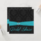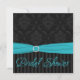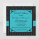 Aqua Black Grey Damask Stripe Bridal Shower Invite
