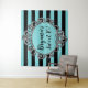 Aqua Black Silver Striped Birthday Party Backdrop Tapestry