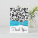 Aqua, Black, White Damask Thank You Card