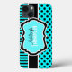 Personalised modern aqua blue, black, and white polka dots with stripes pattern Case-Mate Barely There™ iPad Air case.