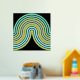 Beautiful contemporary aqua, turquoise, blue, jade green, and real gold foil coloured geometric abstract wave lines pattern on a black background. Elegant, stylish, and eclectic minimalism design for the artistic hip trendsetter, vintage retro art style, or abstract digital geometric motif lover. Match this design with your interior decor colours and decorate your wall with something exclusive and unique on your wall!