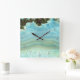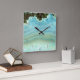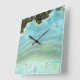 Aqua Blue Agate Geode Gemstone Crystal Pattern Square Wall Clock