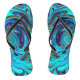Aqua Blue and Black Groovy Abstract Retro Art Flip Flops