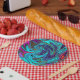 Aqua Blue and Black Groovy Abstract Retro Art Paper Plate