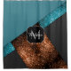 Aqua blue and bronze sparkles modern Monogram Shower Curtain