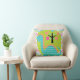 Aqua Blue and Pink Dragon Throw Pillow
