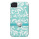 Aqua Blue and White Damask Pattern with Monogram Case-Mate iPhone Case