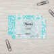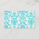 aqua blue and white intricate damask pattern business card