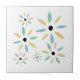 Aqua Blue And Yellow Mid Mod Retro Flowers Tile