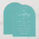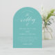 Aqua Blue Arch Wedding Calligraphy Invitation Card